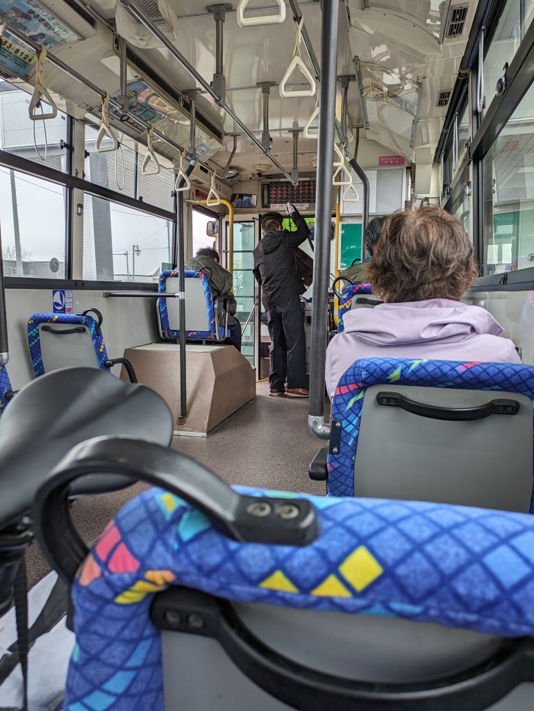 I had planned to get off at Obira and cycle to Rumoi, but I had seen two long-distance cyclists a few kilometres before. One of them looked like an ultra athlete I have watched on youtube, appreciating her for her expertise and her perky manner in front of the camera. If it was her – and I believe she is in Japan – then she didn’t look quite so perky. She looked like she’d rather be somewhere a lot less windy and cold and desolate. I’m not blaming her for not getting off the bus, but it factored into my decision. So, feeling slightly shamefaced I travelled all the way to Rumoi, the capital of the sub-prefecture.