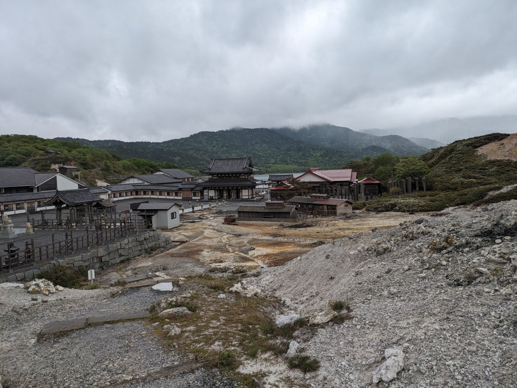 The heavens opened so we beat it back to the car. Another tourist bus arrived. We drove the last kilometres to the hotel. We had a reservation in The Only Ryokan in Town.