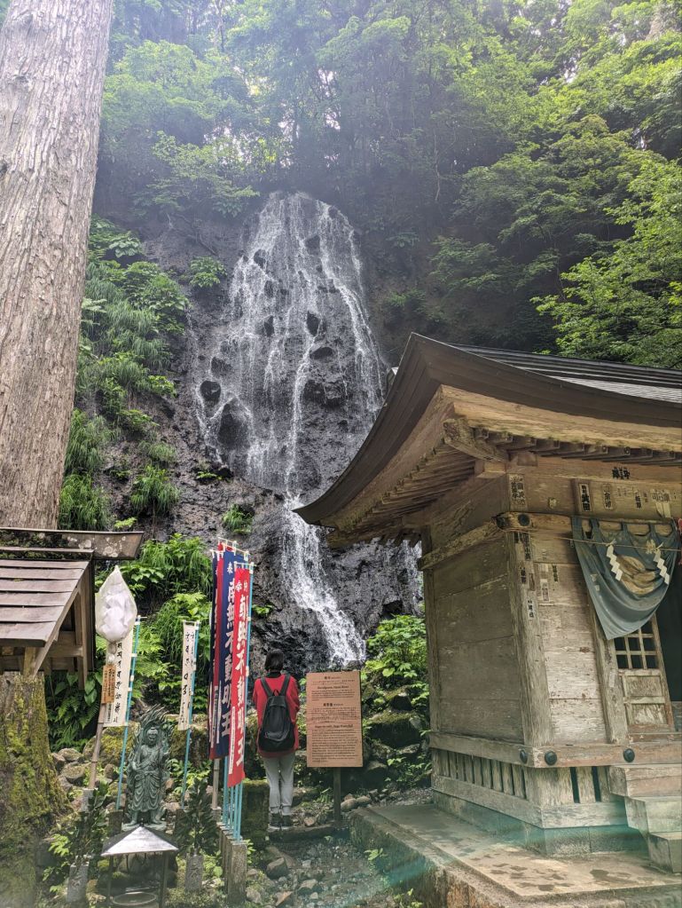 As I mentioned in another post, Mount Haguro is dedicated to the Shugendo, an esoteric mix of Buddhism and Shintoism in which believers undertake austerities – pilgrimages, fasting, praying under waterfalls etc. – as a fast track to enlightenment. I was so fascinated by this idea at university that I wrote my dissertation on it and I was curious to see what traces of it remained. So I set off at ten to climb the 2,000 odd steps to the summit and visit the temple complex.