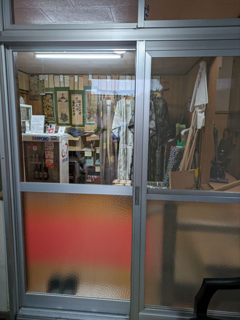 I’m the only guest in a ryokan that could easily fit fifty. They hadn’t run the bath for the single foreigner. All the facilities are on a large scale, and my room looks into the car park.
