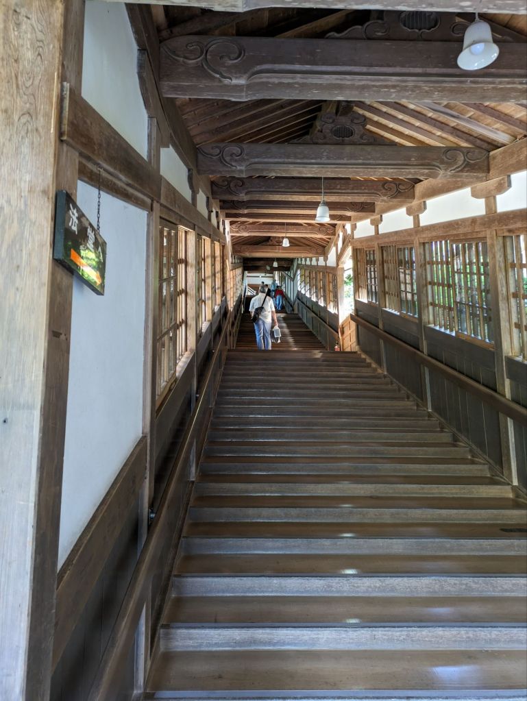 I regretted coming inside. I loved the millennium of care that had gone into the gardens and the symmetry of the buildings, and by contrast the inside seemed quite institutional with its bought from an office shop fittings and functional handrail. However, the further I went in the more I admired it. Eiheiji is a living temple with monks and acolytes walking its many halls. Acolytes were polishing the step into their main practice halls and others rushed about it brooms. The smell of something nice came from the kitchen