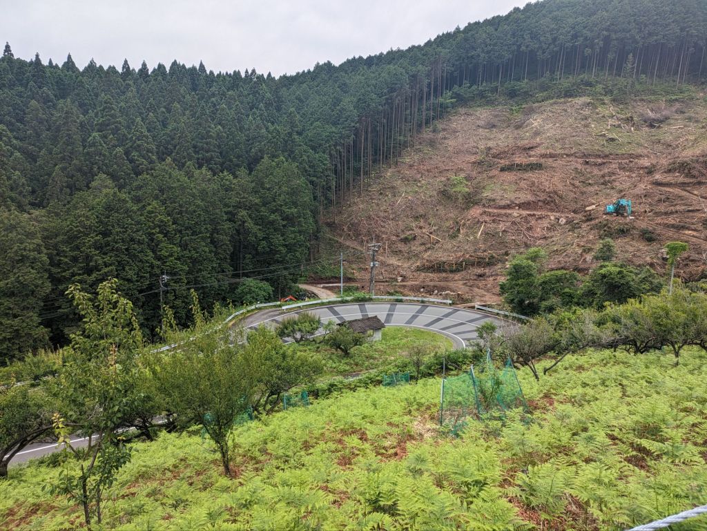 I was snacking above the station when a woman walked up the road and greeted me in polite Japanese. It’s so hard to guess the age of Japanese people. I’d say in her sixties but she might have been a decade older. After answering the normal questions about myself, I asked her if she was from Yutake. She pointed down the road to the hairpin.
