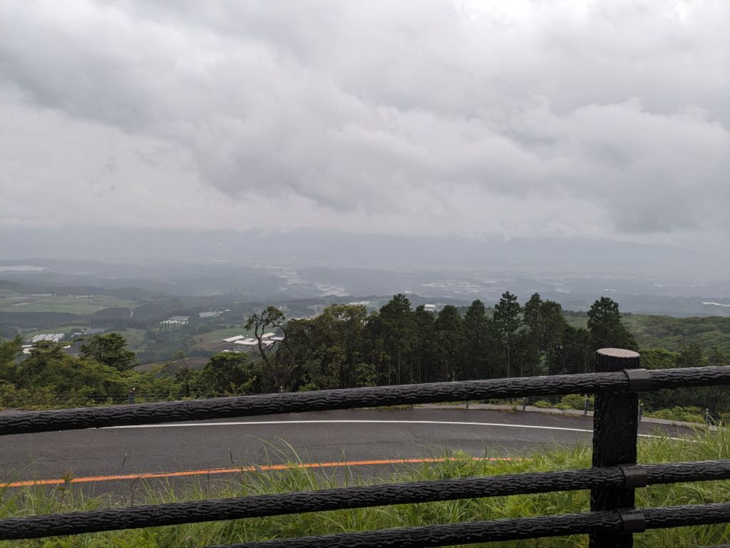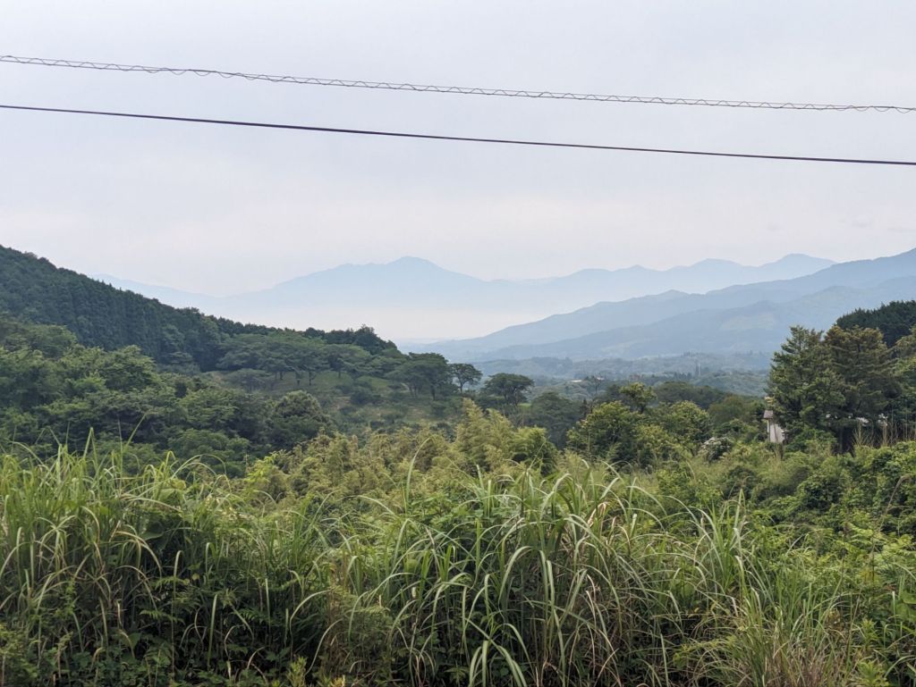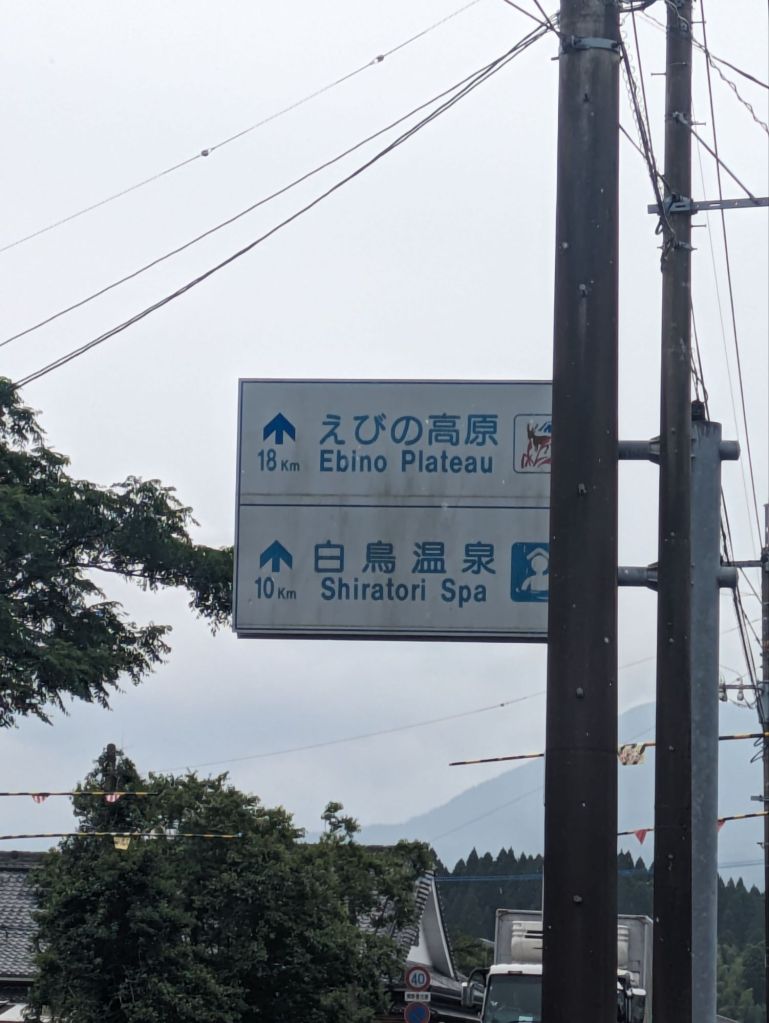 My route took me past the outskirts of Ebino. I got to the jumping off point for the 1000m climb up Kirishima Renzen, the Fog Island Mountains, and somehow I didn’t fancy it. The rain had picked up and wind along with it and I was feeling tired having stayed up to 2am finishing this blog. I toyed with the idea of finding a hotel, resting and doing it in the morning when the weather would be better. I wanted to find a large anonymous chain restaurant where I could weigh my options and instead went into a small ramen shop by the station.