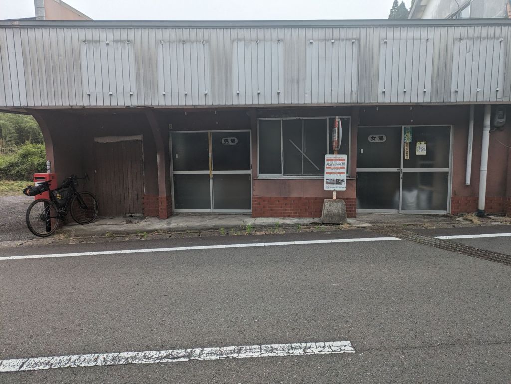 True to the lady’s word, drizzle began to fall. I propped Ribena against an abandoned onsen, drank half a Coke, and put on my rain jacket. My rain trousers and thermals were in the back of Julian’s car.
